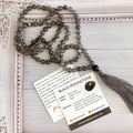Featuring 6mm Black Moonstone beads, a grounding Lava Stone guru bead, and a soft dark-grey tassel, this Mala is all about anchoring your energy. Lava Stone brings raw earth strength and resilience, making it the perfect companion for Black Moonstone’s intuitive, lunar softness.