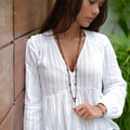 The majority of our 6mm x 108 bead, Mala Bead Necklaces average a total length of approximately 90cm. Our tassels are either 5cm or 6.5cm